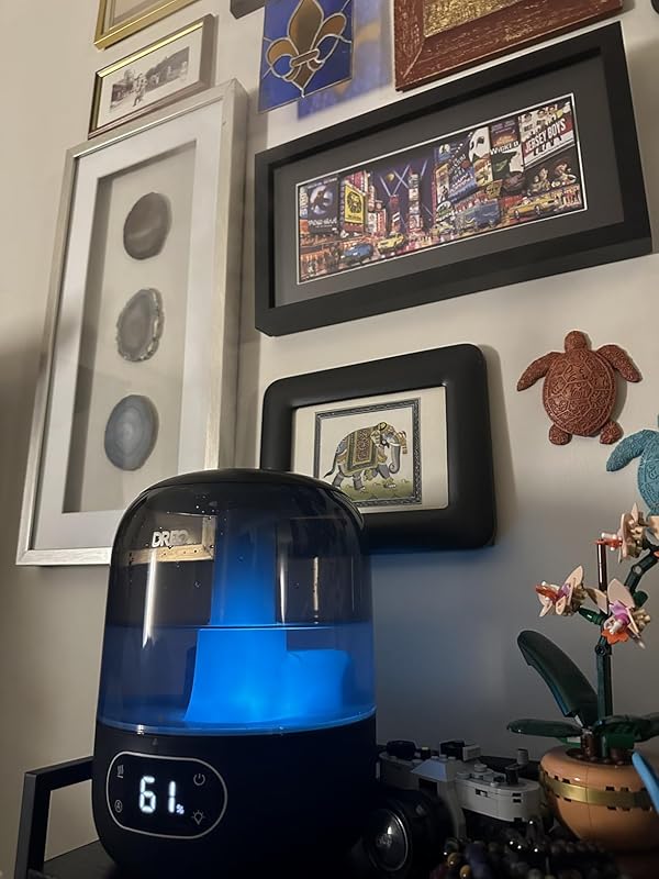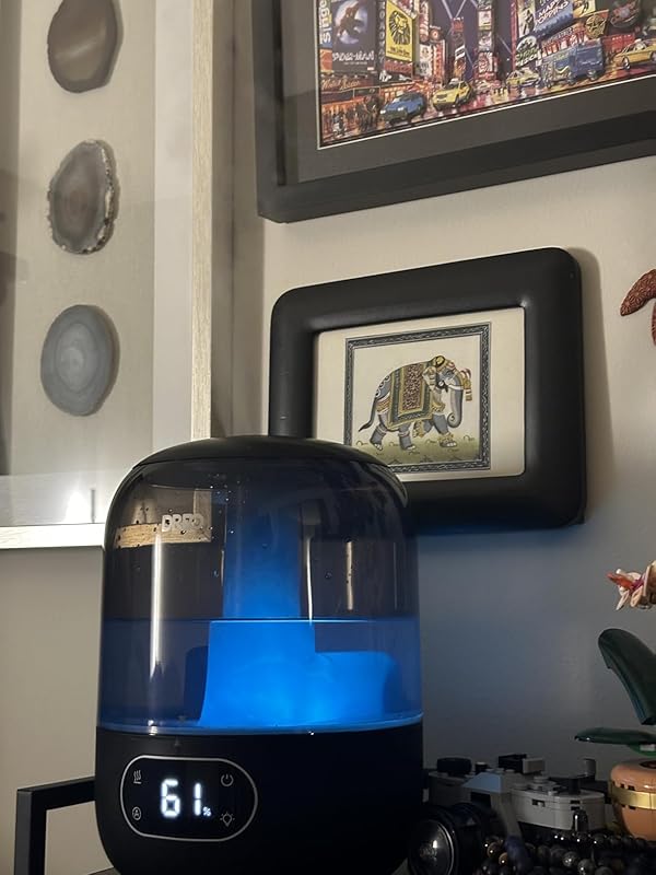 About this item 𝐅𝐨𝐫𝐠𝐞𝐭 𝐚𝐛𝐨𝐮𝐭 𝐜𝐨𝐧𝐬𝐭𝐚𝐧𝐭 𝐫𝐞𝐟𝐢𝐥𝐥𝐬: With a 3L tank and convenient top-fill design, this humidifier large room for baby offers up to 30 hours of long run time humidification in sleep mode, ensuring dry air is no longer an issue for your family, plants, and baby. 𝐋𝐞𝐚𝐯𝐞 𝐝𝐫𝐲𝐧𝐞𝐬𝐬 𝐛𝐞𝐡𝐢𝐧𝐝: This cool mist humidifier for large room releases a mist at 250ml/hr, projecting up to 40 inches high with its 360° rotating nozzle. It effectively covers up to 300 sq ft, making dry air a thing of the past. 𝐒𝐥𝐞𝐞𝐩 𝐝𝐞𝐞𝐩𝐥𝐲, 𝐧𝐢𝐠𝐡𝐭 𝐚𝐟𝐭𝐞𝐫 𝐧𝐢𝐠𝐡𝐭: Enjoy a serene sleep with DREO’s 26dB (in Sleep Mode) whisper-quiet air humidifier, crafted for your baby’s ultimate comfort. Tailor your space with adjustable ambient lighting that can be turned on or off as needed. 𝐔𝐥𝐭𝐫𝐚𝐟𝐢𝐧𝐞 𝐦𝐢𝐬𝐭, 𝐞𝐯𝐞𝐧 𝐜𝐨𝐯𝐞𝐫𝐚𝐠𝐞: Powered by Ultrasonic Tech, this humidifiers for bedroom emits a fine 5μm mist with 2.4MHz high-frequency atomization. It evenly humidifies the room, keeping every corner refreshed and moist without dampening your furniture. 𝐒𝐩𝐚-𝐥𝐢𝐤𝐞 𝐜𝐨𝐦𝐟𝐨𝐫𝐭 𝐫𝐢𝐠𝐡𝐭 𝐚𝐭 𝐡𝐨𝐦𝐞: Transform your living space into a spa with this cool mist humidifier, featuring an aroma pad tray for essential oils. Enjoy calming aromas paired with perfect humidity for ultimate peace. 𝐎𝐩𝐭𝐢𝐨𝐧𝐚𝐥 𝐂𝐚𝐫𝐭𝐫𝐢𝐝𝐠𝐞𝐬 𝐟𝐨𝐫 𝐇𝐞𝐚𝐥𝐭𝐡𝐢𝐞𝐫 𝐌𝐢𝐬𝐭 & 𝐋𝐞𝐬𝐬 𝐌𝐚𝐢𝐧𝐭𝐞𝐧𝐚𝐧𝐜𝐞: Breathe the purest mist with minimal upkeep. Upgrade effortlessly with the Demineralization Cartridge (fights white dust) and Clean Mist Cartridge (for healthier humidity). The modular design spins off for easy cleaning, and an ICON light tells you when to refresh cartridges. (Search: Dreo Demineralization Cartridge / Dreo Clean Mist Cartridge)
