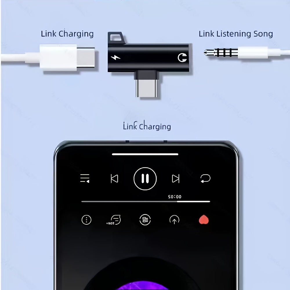 Multifunction 2-in-1 USB C to 3.5mm Headphone Jack and Charger Adapter